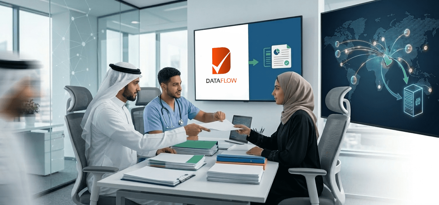 عند التقديم، يتم إرسال مستنداتك إلى جهة متخصصة (شركة DataFlow)، والتي تقوم بـ: